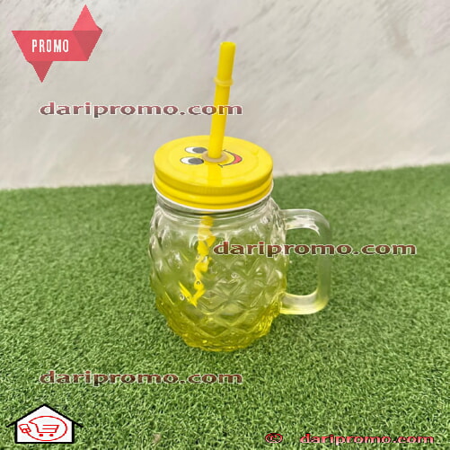 Tasse à mojito en verre avec couvercle et paille - jaune et transparent - 500 ml