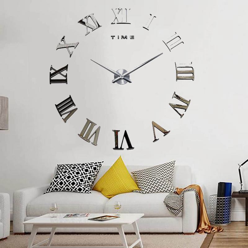 Description : Type : Horloge murale - Forme : Rond - Matière : Acrylique - Style : 3D - Caractéristique : les chiffres et les numéros sont Autocollants - La boite de montre est aussi autocollant - Type de pile : AA ( cigarette ) - Longueur d'Aiguille : 10 & 14 cm - Nombre d'aiguille : 2 - Diamètre : approximativement entre 120 et 160 cm ( ajustable selon les besoins )