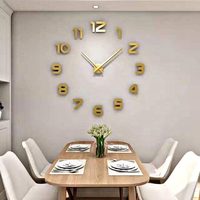 Type : Horloge murale - Forme : Rond - Matière : Acrylique - Style : 3D - Caractéristique : les chiffres et les numéros sont Autocollants - La boite de montre est aussi autocollant - Type de pile : AA ( cigarette ) - Nombre d'aiguille : 2 - Diamètre : 90-110 cm ( ajustable selon les besoins )
