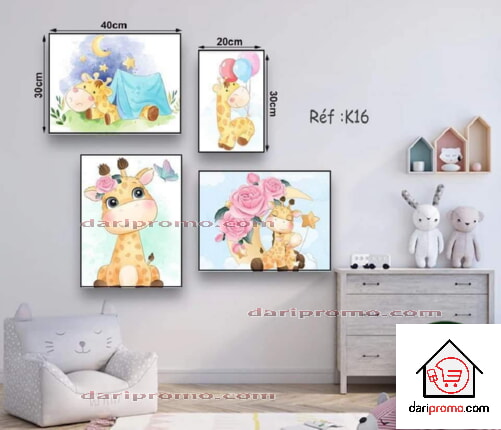 Dimensions : 3 pcs 40*30 cm et 1 pc 30*20 cm - Matières : bois mdf et papier imprimé - Nombre de pièces : 3