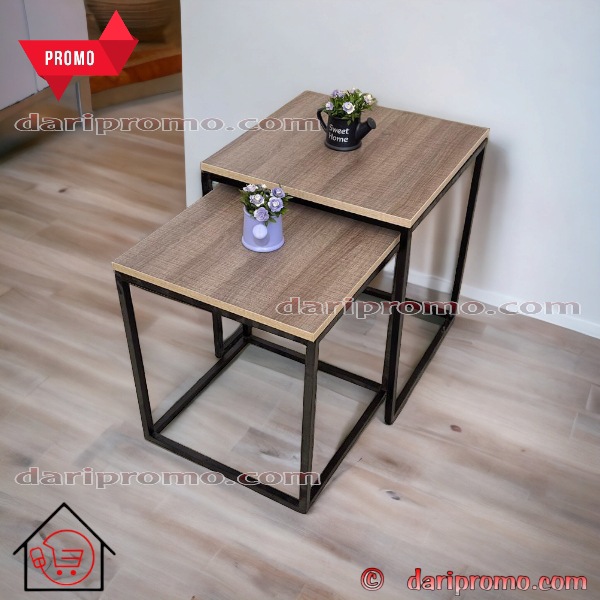 Matières : en fer et en bois stratifié - Dimensions : 45*45 et 40*40 cm