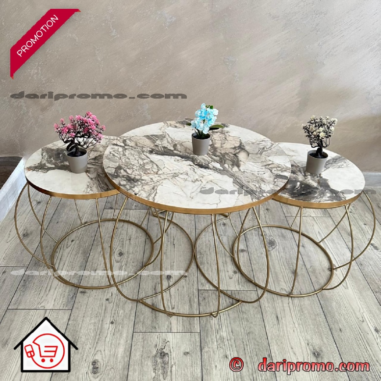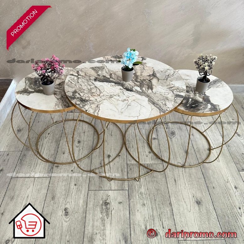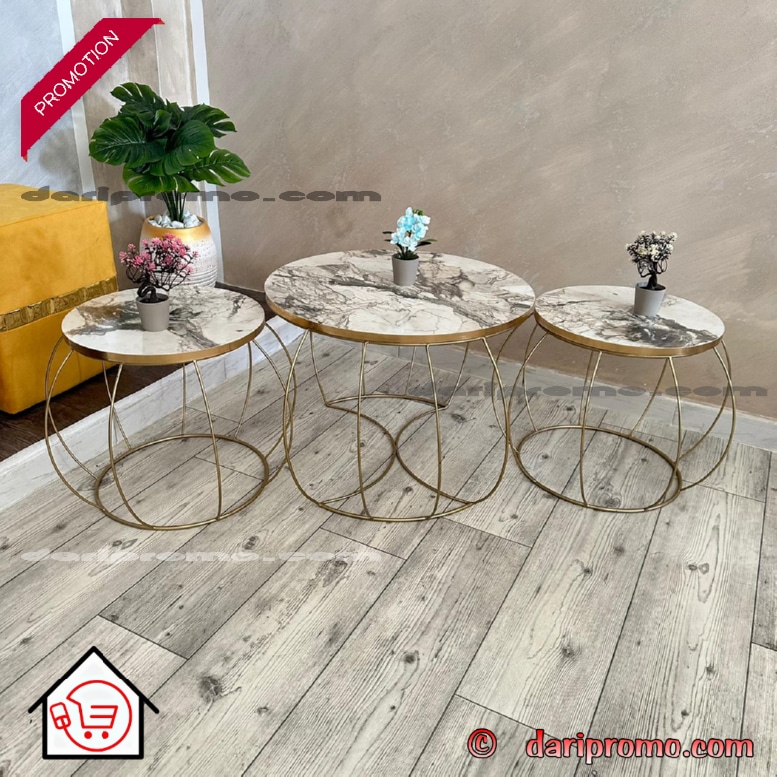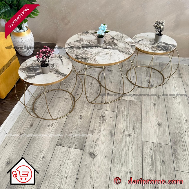 Dimensions : 60*45 cm et (2*) 40*40 cm - Matière : socle en métal et plateau en bois MDF stratifié