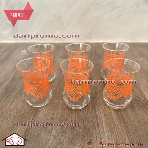 Lot de 6 verres de thé vth1 - transparent avec motif orangé