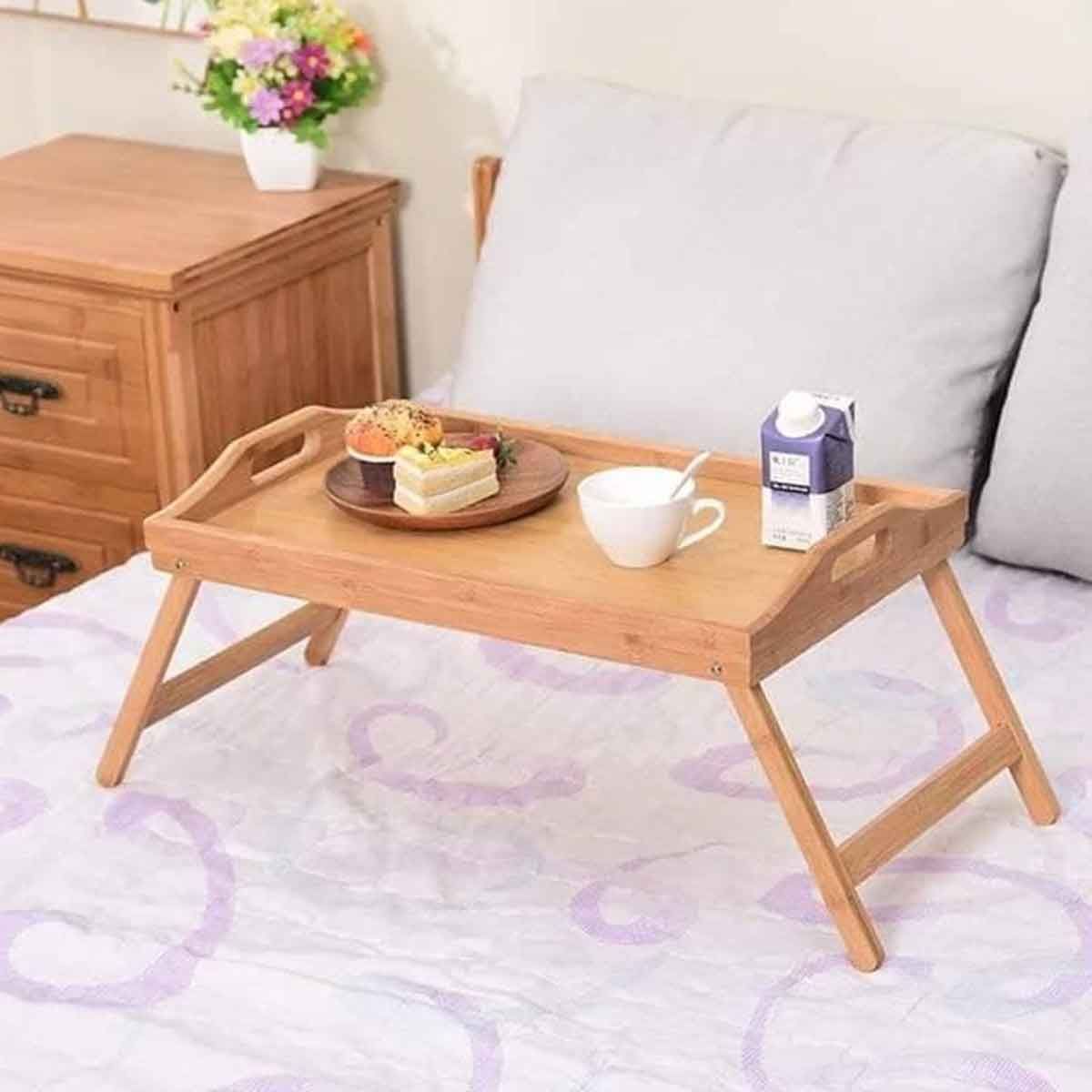 Prendre vos petits-déjeuners au lit facilement grâce à un plateau de lit en bois.