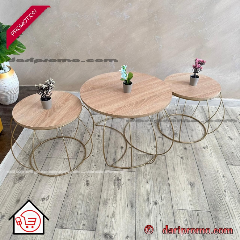 Dimensions : 60*45 cm et (2*) 40*40 cm - Matière : socle en métal et plateau en bois MDF stratifié