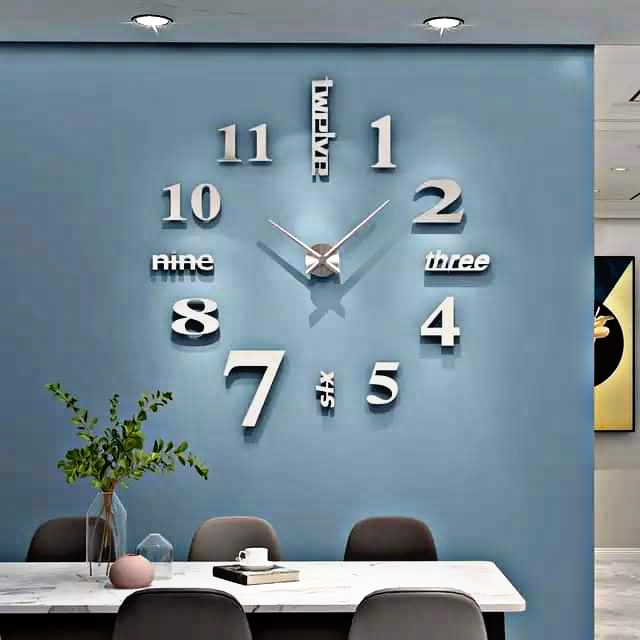 Type : Horloge murale - Forme : Rond - Matière : Acrylique - Style : 3D - Caractéristique : les chiffres et les numéros sont Autocollants - La boite de montre est aussi autocollant - Type de pile : AA ( cigarette ) - Nombre d'aiguille : 2 - Diamètre : 90-110 cm ( ajustable selon les besoins )