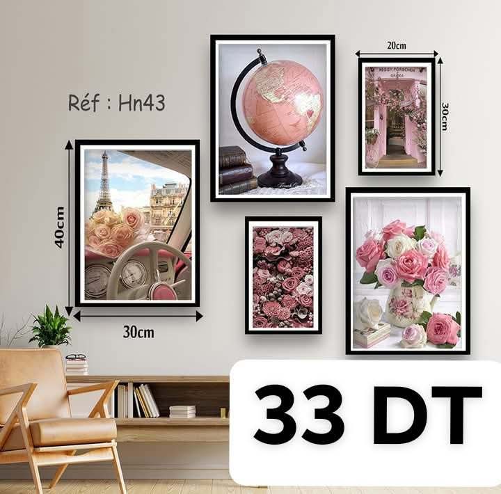 .Dimensions : 3 pcs 40*30 cm et 2 pcs 30*20 cm - Matières : bois mdf et papier imprimé qualité HD - Nombre de pièces : 5