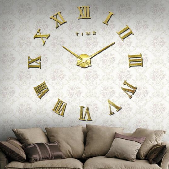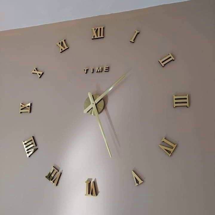 Description : Type : Horloge murale - Forme : Rond - Matière : Acrylique - Style : 3D - Caractéristique : les chiffres et les numéros sont Autocollants - La boite de montre est aussi autocollant - Type de pile : AA ( cigarette ) - Longueur d'Aiguille : 10 & 14 cm - Nombre d'aiguille : 2 - Diamètre : approximativement entre 120 et 160 cm ( ajustable selon les besoins )