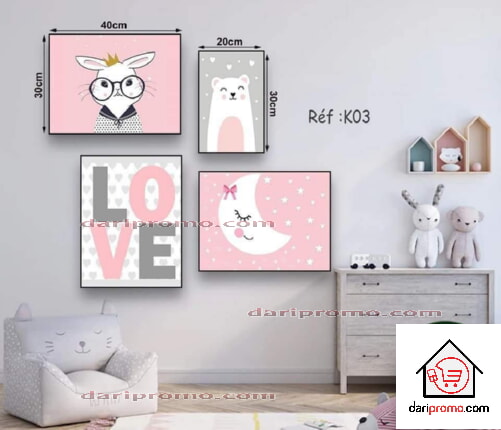Dimensions : 3 pcs 40*30 cm et 1 pc 30*20 cm - Matières : bois mdf et papier imprimé - Nombre de pièces : 3