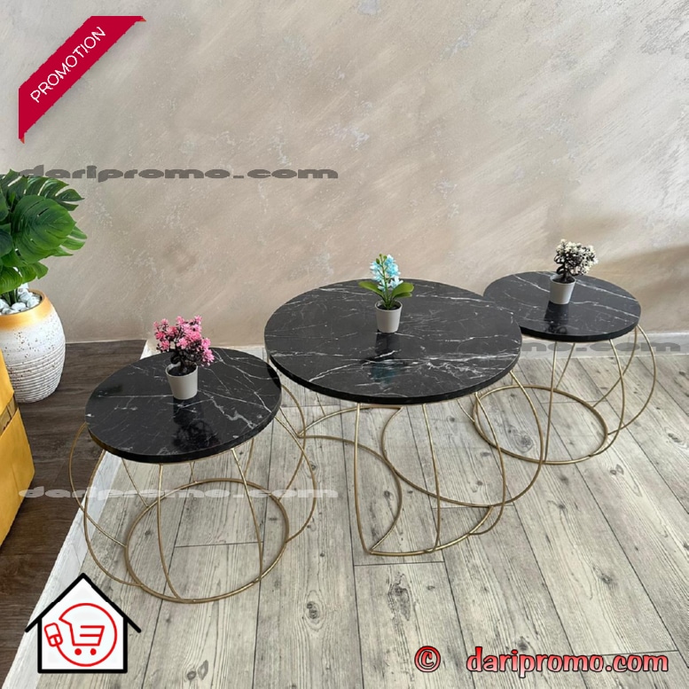 Dimensions : 60*45 cm et (2*) 40*40 cm - Matière : socle en métal et plateau en bois MDF stratifié