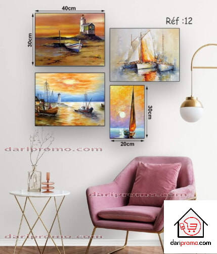 Dimensions : 3 pcs 40*30 cm et 1 pc 30*20 cm - Matières : bois mdf et papier imprimé - Nombre de pièces : 3